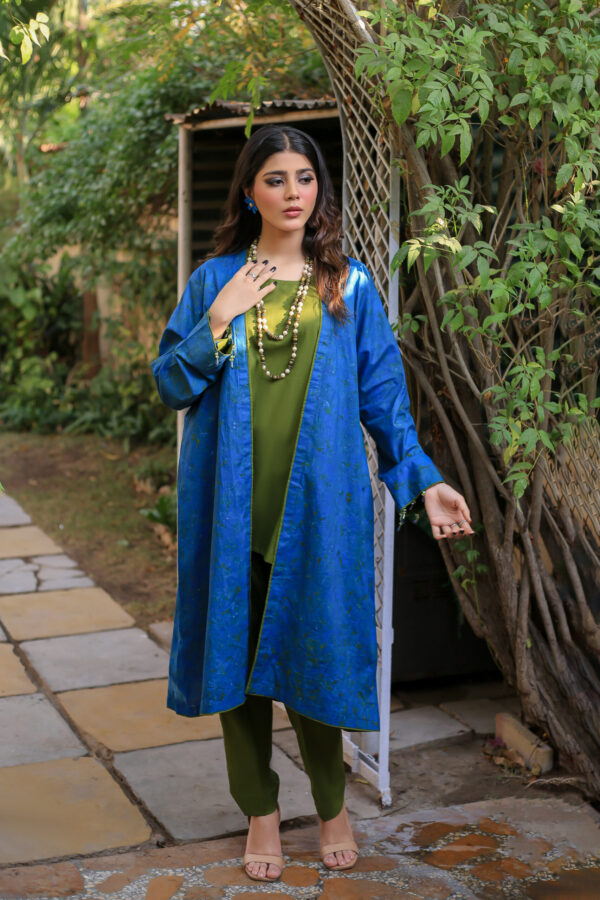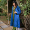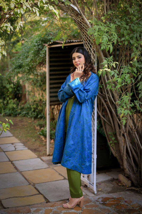 Gildora Sky is a sublime expression of modern elegance and sustainable artistry. Crafted from 100% pure cotton, this refined three-piece ensemble — long coat, shirt, and trousers — blends comfort with conscious luxury. The coat, naturally dyed with marigold flowers, showcases a unique handcrafted design that makes each piece entirely one-of-a-kind. Gildora Sky embodies timeless sophistication, artisanal craftsmanship, and eco-conscious fashion, perfect for those who value individuality and elevated style.