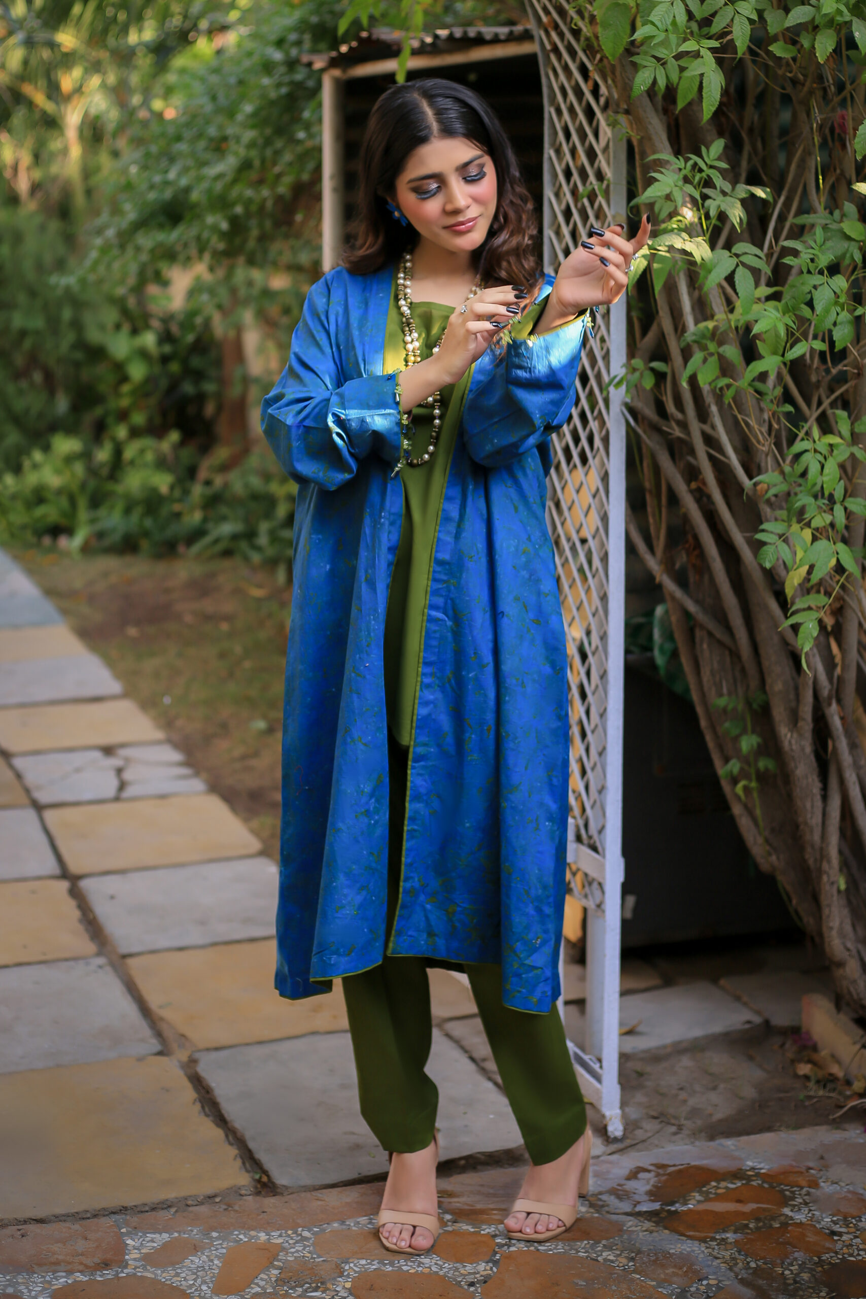 Gildora Sky is a sublime expression of modern elegance and sustainable artistry. Crafted from 100% pure cotton, this refined three-piece ensemble — long coat, shirt, and trousers — blends comfort with conscious luxury. The coat, naturally dyed with marigold flowers, showcases a unique handcrafted design that makes each piece entirely one-of-a-kind. Gildora Sky embodies timeless sophistication, artisanal craftsmanship, and eco-conscious fashion, perfect for those who value individuality and elevated style.